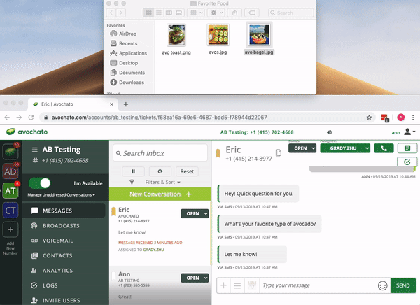 Blog › Feature Friday: Copy and Paste Images Feature Friday: Copy and Paste Images Avochato Product If you're sending photos and videos over Avochato, we've got a fun new feature for your work flow. Now you can copy and paste images directly into an Avochato conversation. We recommend sending attachments that are of type .jpg, .png, or .gif. Keep in mind that MMS messages are subject to carrier availability and other limitations. Have a fun idea for a feature? Send us a text and let us know. Happy chatting!