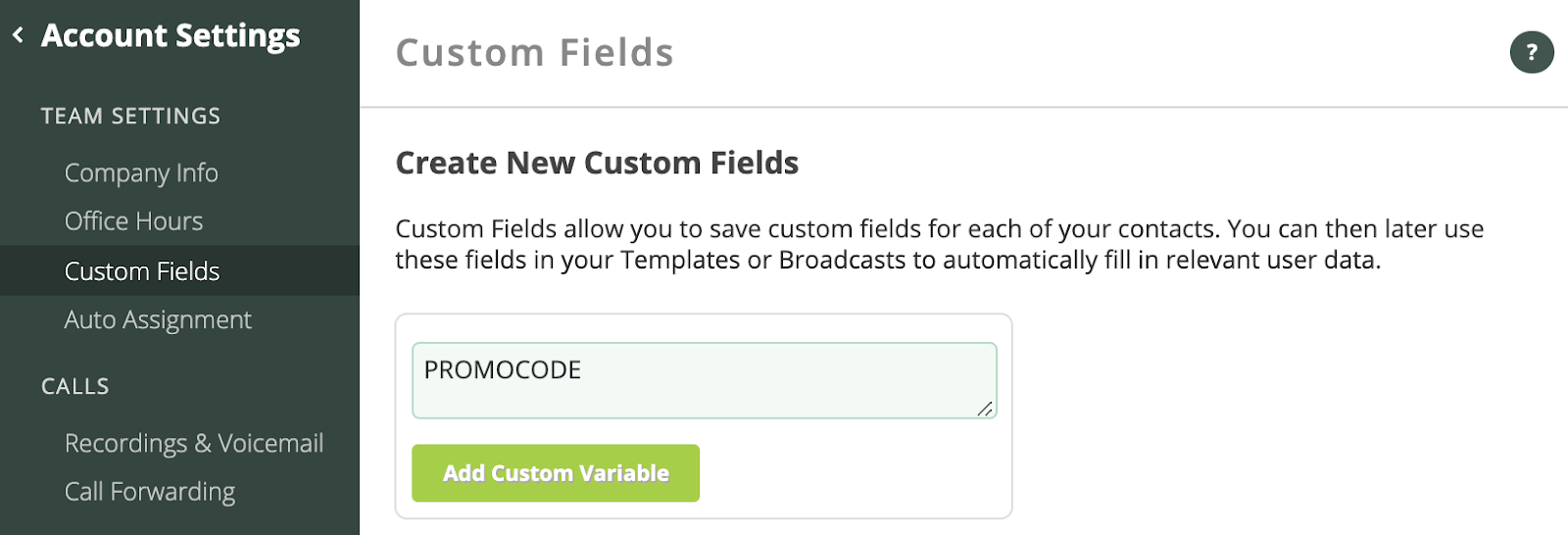 Blog › How to Integrate SMS Surveys with salesforce to Collect Information How to Integrate SMS Surveys with salesforce to Collect Information Tips and Tricks When Would I Integrate SMS Surveys with salesforce? Let’s say you’re running a promotional campaign at a conference to encourage customers to sign up for your product. Your customers might text a keyword, such as CONFERENCE, in order to engage with you after the event. Perhaps each customer saw a unique “promo code” that you’d like to track back to your sales funnel. Rather than expect your sales team to collect that manually, Avochato makes it easy to sync that information into your Salesforce Leads directly. Using Avochato's survey product and our Salesforce integration has many benefits like being able to capture that data with minimal effort by your team. How Do I Set This Up? 1. Add the Appropriate Field in Salesforce The first step is to add a field on your object where you want the data to sync. In this example, we’ve set up a field called “Promo Code” on our Lead object. Make sure you copy the API Field Name (in this case “Promo_Code__c”) for use later. 2. Enable Salesforce Syncing in Avochato Settings Once you have set up your Salesforce integration in Avochato, visit the Settings page from within Avochato, under the Integrations tab. From the Settings page, ensure that you are syncing Avochato Contact information to the appropriate Salesforce Object. In this case, we’ve chosen a Lead. Finally, enable the setting to ensure that changes to your Avochato Contacts will sync to the selected Salesforce Objects. 3. Add a Custom Field to Avochato Contacts From Avochato, go to your Settings menu and click on Custom Fields. Add the appropriate Custom Field where you’d like to save the value within Avochato. The name of the field can be anything -- in this case we used the name “Promocode” for consistency. Once the Field has been added, click the + button in the list below to manage the options for that field. Select the box that says “Sync this to Salesforce Leads/Contacts” and enter the API Name of the field that you created in the first step of this tutorial. Click “Update” to save these changes. 4. Check Your Set-Up Now is the time to make sure that the data is flowing as expected. The easiest way to test this is by opening up a Contact in Avochato that has a corresponding Salesforce record. For this example, we’ve pulled up an Avochato Contact “Ann” who has the same phone number in a corresponding Salesforce Lead. To confirm that your setup is working, all you should have to do is save a value in your newly created Custom Field within your Avochato Contact. Try entering some data on your Avochato Contact. When you click Save on your Contact, the flow of data should just work™️ and sync directly to the corresponding Salesforce Lead. If the data does not sync for any reason, please feel free to reach out to our team for support. 5. Integrate With a Survey Rather than expecting your employees to manually collect this data, you might want to use a survey to automatically solicit the information. You can set up a Survey from within Avochato easily by going to the Settings tab and visiting Surveys. Surveys are triggered by a keyword -- in this case, we use “Conference” as ours. Next, we enter the first question (in this case asking for the customer’s promotional code). The optional key that we use is the Avochato Contact Custom Field Name, which we had saved before as “promocode” (this is not case sensitive). Once you save the survey, you can test your full integration by texting the keyword “CONFERENCE” into your Avochato phone number. Your response to the SMS survey question will be saved into the “Promocode” custom field for your Avochato Contact, and that data will then be synced directly to the corresponding Salesforce Lead. And that’s a wrap! Send us a text at 415-214-8977 or email us at sales@avochato.com to let us know about how you’re interested in syncing data into your Salesforce account.